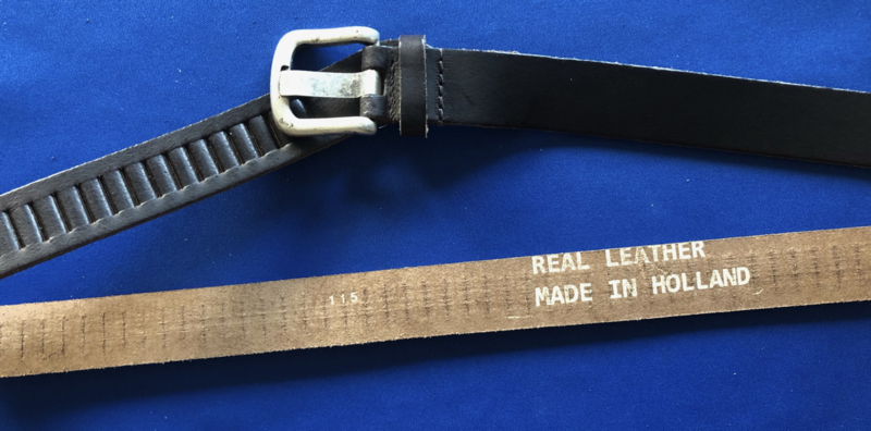 Leren heren riem sleuf 3 cm breed 115 cm lang gesp oud zilver kleur donker bruin